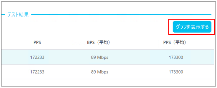 「グラフを表示」をクリックすることでテスト結果をグラフ表示可能です。