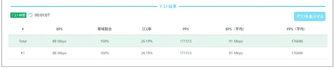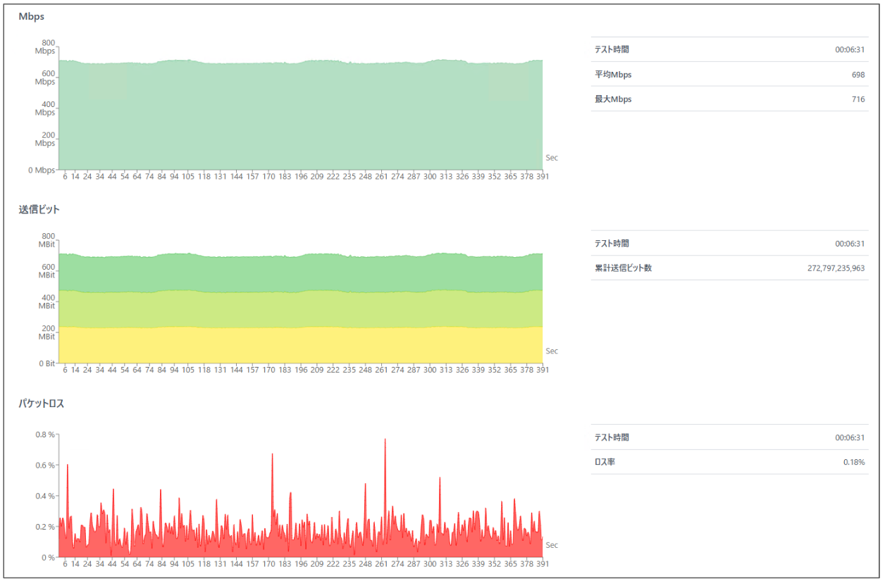 以下の通りにネットワーク負荷をかけ、ネットワークスループットを確認する。
