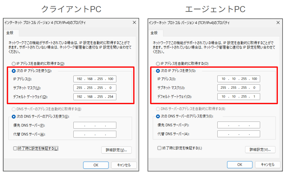 クライアント用アプリケーション、エージェント用アプリケーションをそれぞれ別のPCで動作させるために、2台のPCが必要です。