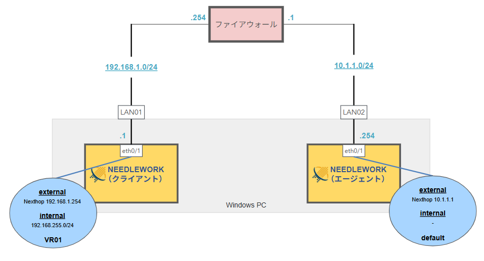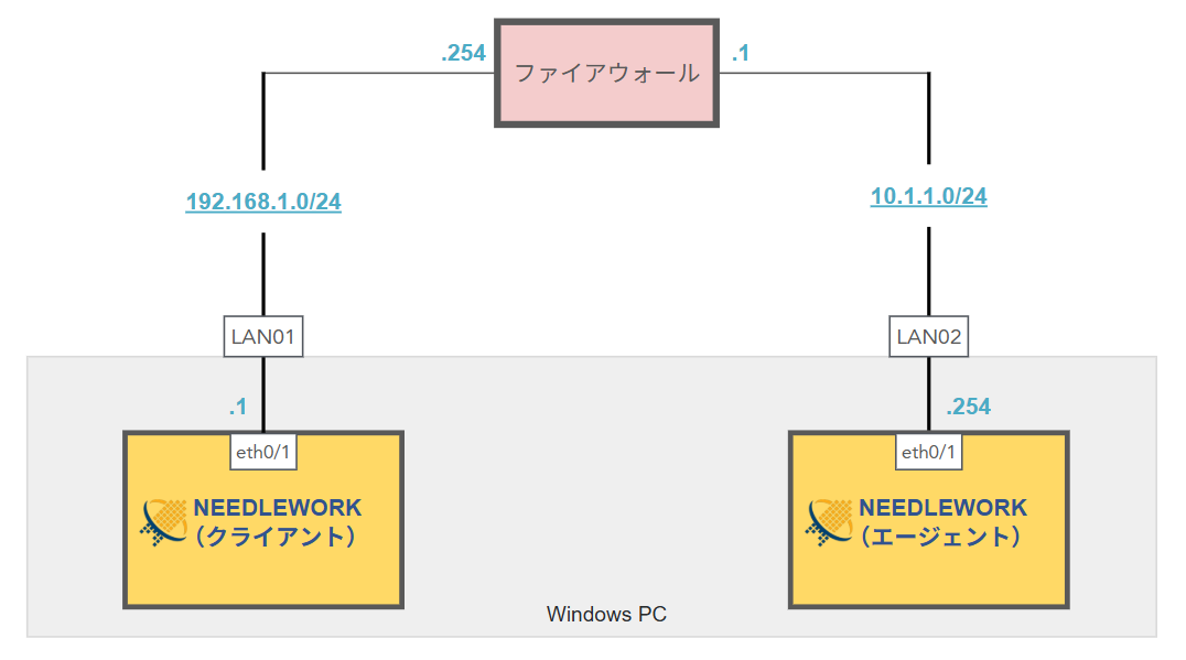 NEEDLEWORKをインストールしたPCのインターフェース(※)にファイアウォールを接続します。